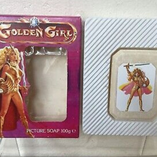 (The photos of the soap are from an Ebay UK listing. The talc bottle photo was posted by Simon Eckert in the Golden Girl fan page on Facebook.)